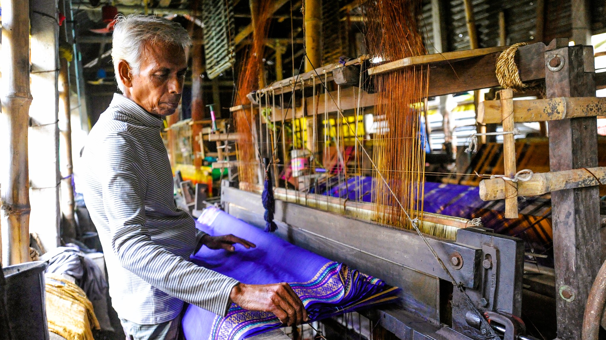 We cross the mighty Jamuna Multipurpose Bridge (6th longest in South Asia) to Sirajganj. We visit Belkuchi and Shahjadpur, the beating heart of the Tant industry. Step into large-scale handloom factories where colorful yarn dries in the sun. Visit the Rabindra Kachharibari (Nobel Laureate Tagore's country house) to connect literature with the landscape. You will have ample opportunity to buy textiles at wholesale prices before we return to Dhaka in the evening.